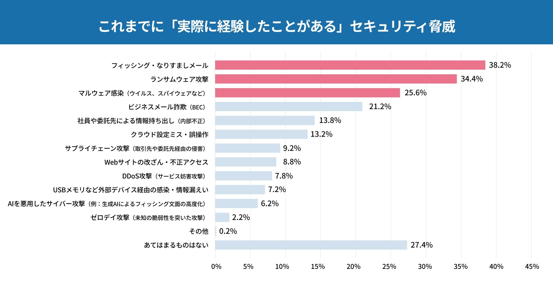 - セキュリティ対策の重要性を 9割以上 の担当者が認識している一方で、 74%が「対策は不十分」 と回答し、意識と実態の間に大きなギャップがあることが明らかになりました。