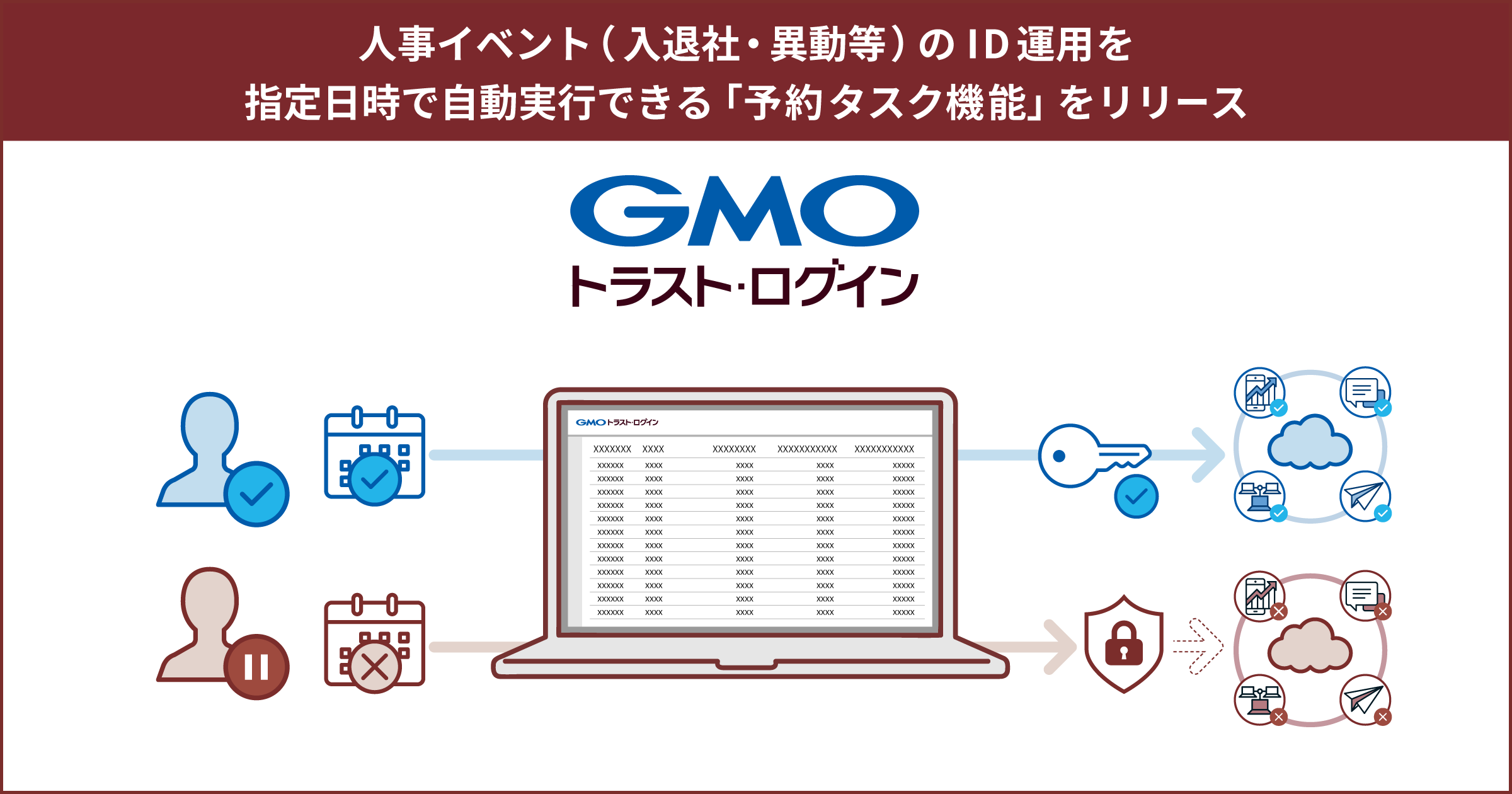「GMOトラスト・ログイン」、人事イベント(入退社・異動等)のID運用を指定日時で自動実行できる「予約タスク機能」をリリース